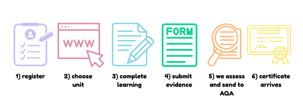 It’s an accreditation by AQA, the largest GCSE and A level awarding body in England. It is open to learners of all ages and abilities, and for each unit completed, learners receive an official AQA certificate listing what they have achieved.